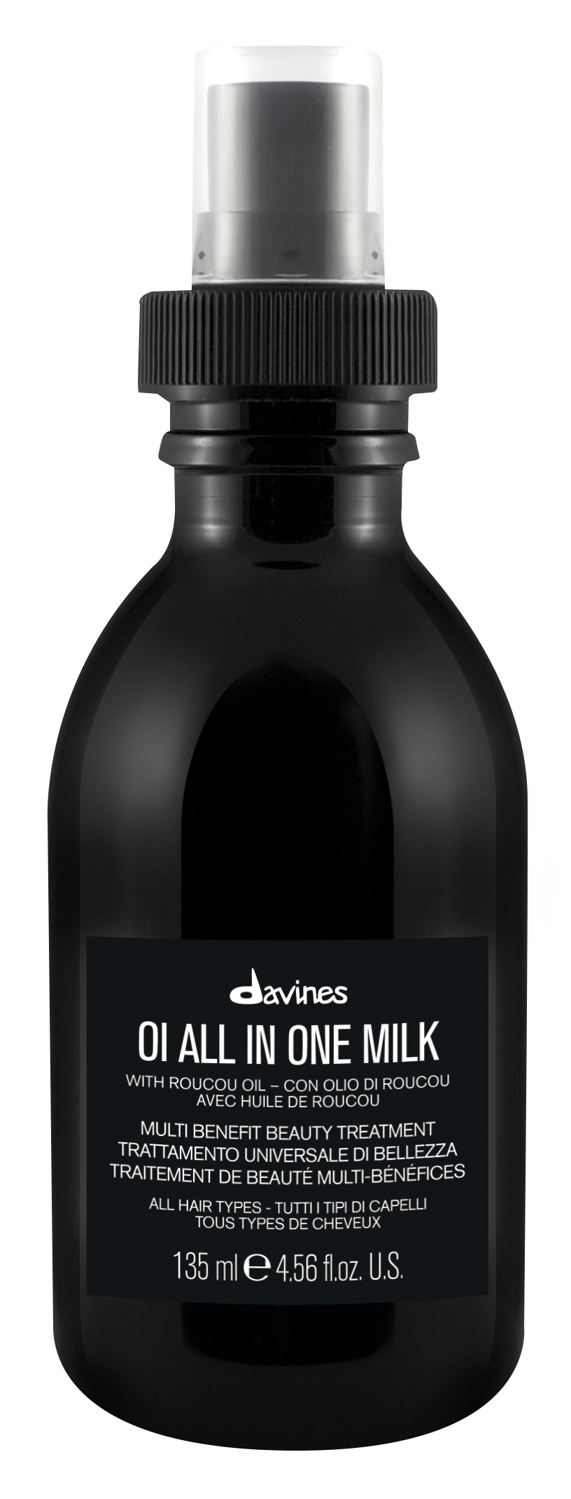Lightweight OI All In One Milk is a multi-function leave-in spray treatment that softens, detangles, controls frizz and protects the hair from heat.
