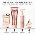 Anti-Frizz Glaze Milk By Kérastase is an All-in-1 smoothing spray for long hair prone to frizz. It's specially formulated with hyaluronic acid, glycolic acid and wild rose in oil to deliver dreamy, bouncy, glossy hair.