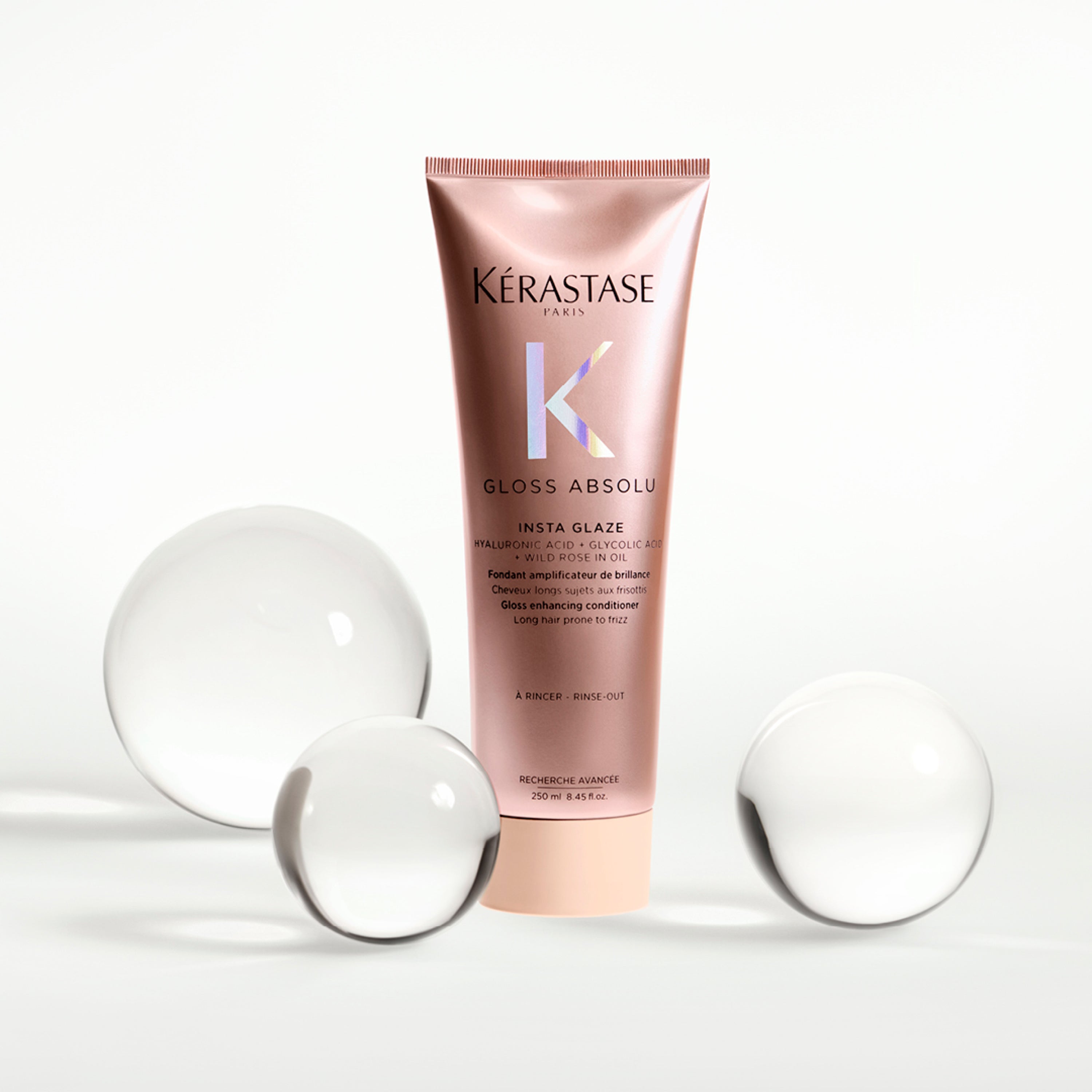 Insta Glaze by Kérastase is a gloss enhancing conditioner for long hair prone to frizz. It's specifically formulated with hyaluronic acid, glycolic acid and wild rose in oil to deliver dreamy, bouncy, glossy hair.