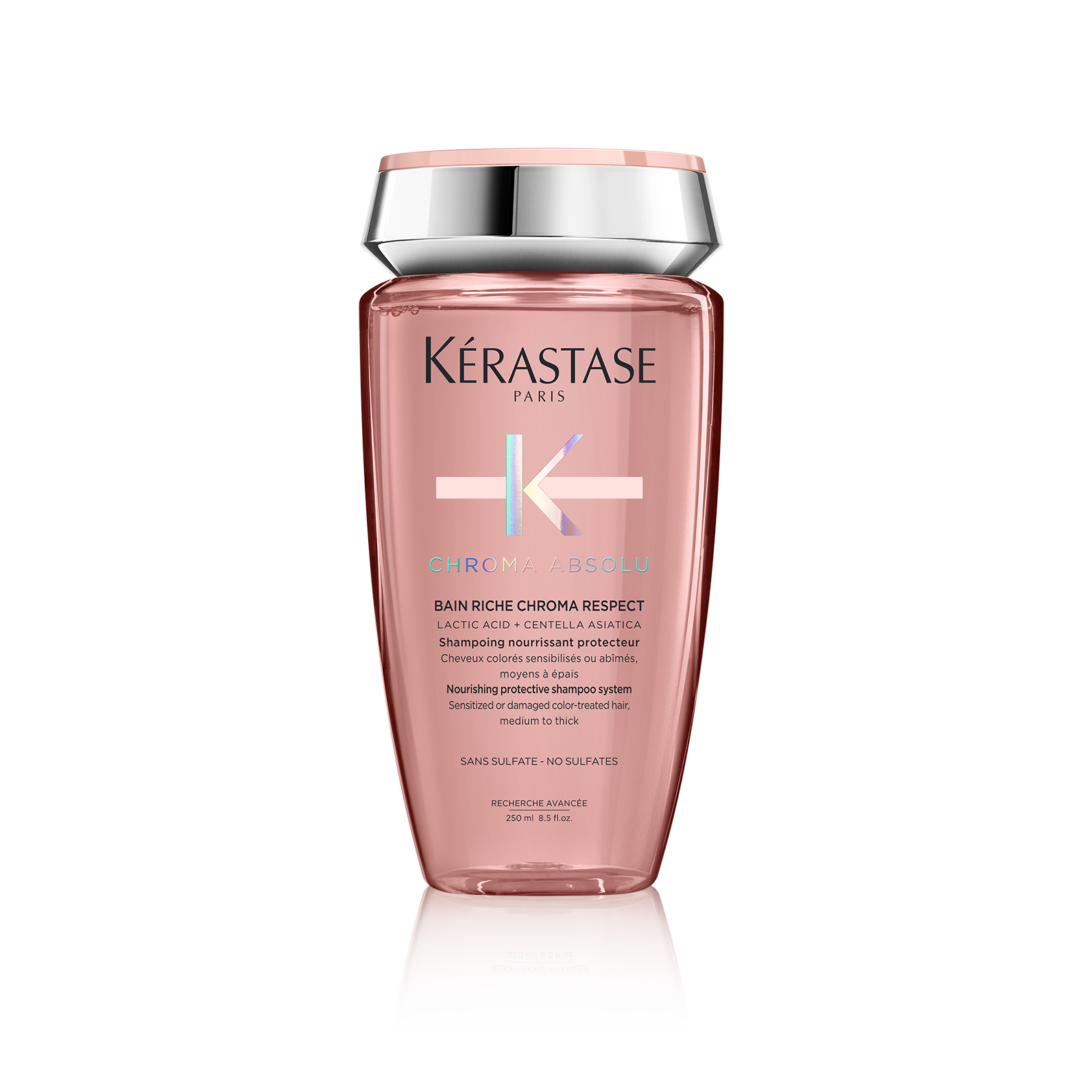 A gentle cleansing shampoo specially designed for medium to thick colour treated hair. Enriched with Glycerin, Amino acid & Hyaluronic Acid, Bain Chroma Respect Riche targets the areas of fibre that need the most care, smoothing the surface, nourishing and protecting colour.. Alpha-hydroxylated acid (AHA) is known for its ability to trap dulling minerals that can compromise hair shine. Hair is soft with intense shine and colour vibrancy. The perfect addition to your hair routine,