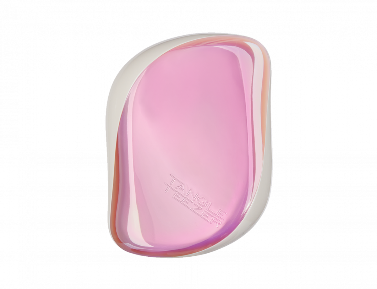 Our travel-friendly detangling hairbrush, the Tangle Teezer Compact Styler smooths, shines and defines on-the-go. Ideal for regular hair types, it tames stray strands and detangles wet or dry hair with its two-tiered regular-flex teeth which glide through the hair without pulling and are protected by a click-on cover.