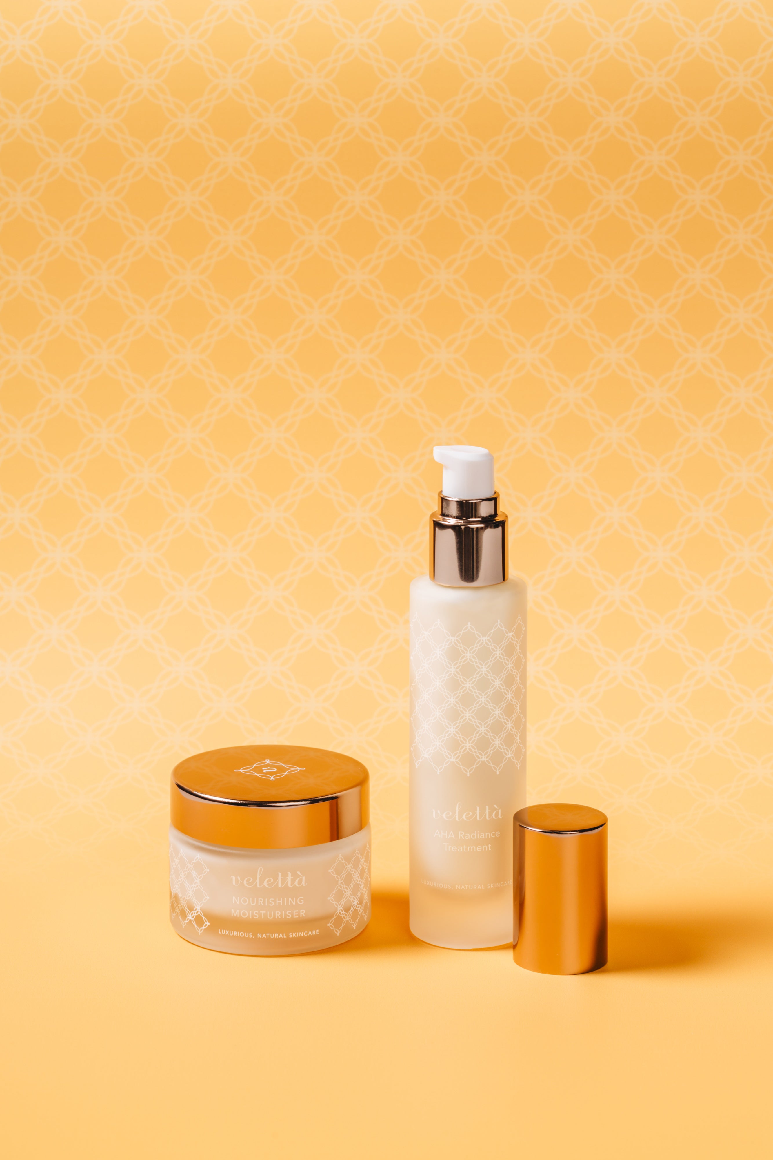 Products: Youthful Glow AHA Radiance Treatment and Nourishing Moisturiser.