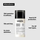 L'Oreal Professionnel Serie Expert Metal Detox Leave In Creme removes metal to prevent hair breakage & colour shift.